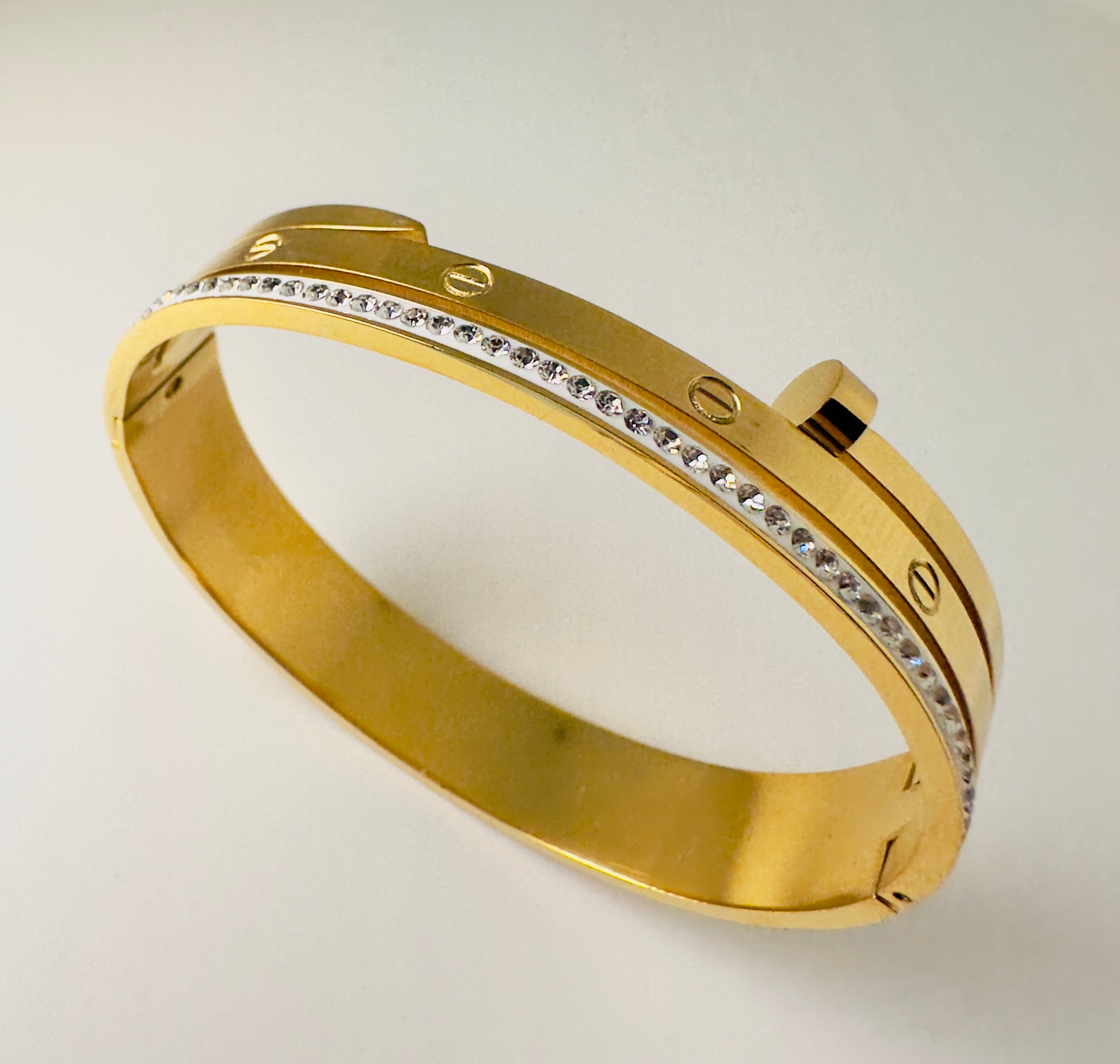 Sleek curves, screw details, and a luxe crystal line — the Bolt Luxe Bracelet blends structure with sparkle.